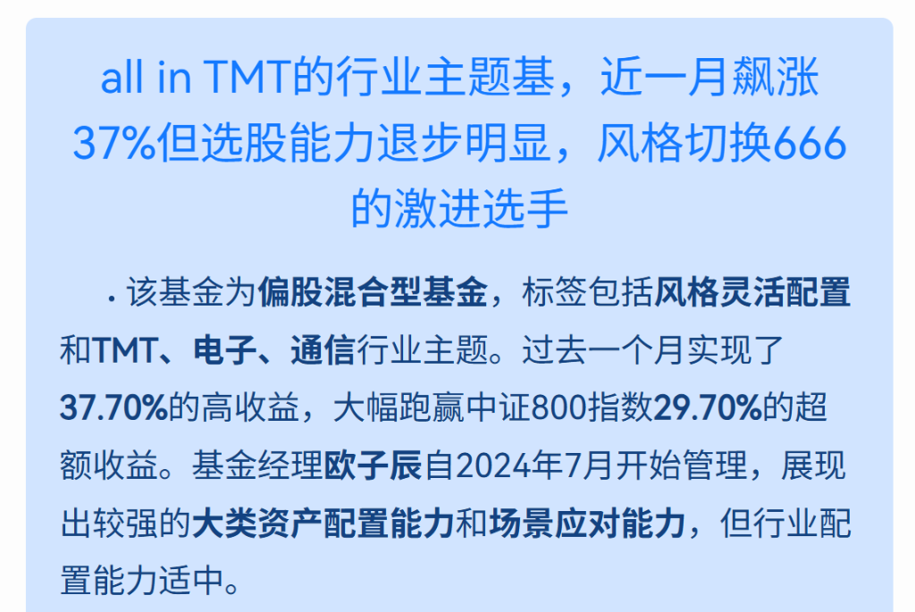数据还显示,欧子辰自2024年7月开始管理此基金,近一月飙涨37%,大幅跑赢中证800指数29.7%的超额收益。不过作业本航海指数分析提示,该基金大举押注科技行业,需警惕行业集中风险。