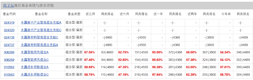 欧子辰现任基金资产总额14.32亿元,其管理的永赢智能领先混合A今年以来收益54.34%,近6月收益57.25%,近3月收益67.56%。永赢新材料智选产品深度关注固态电池产业链,因产品新近上市,暂无业绩排名。